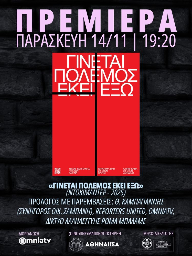 Πρόλογος: Θ. Καμπαγιάννης (συνήγορος οικ. Ν. Σαμπάνη), Δ. Καράβολα (Reporters United), Φ. Συμεωνίδης (OmniaTV), Δίκτυο Αλληλεγγύης Ρομά Μπαλαμέ.