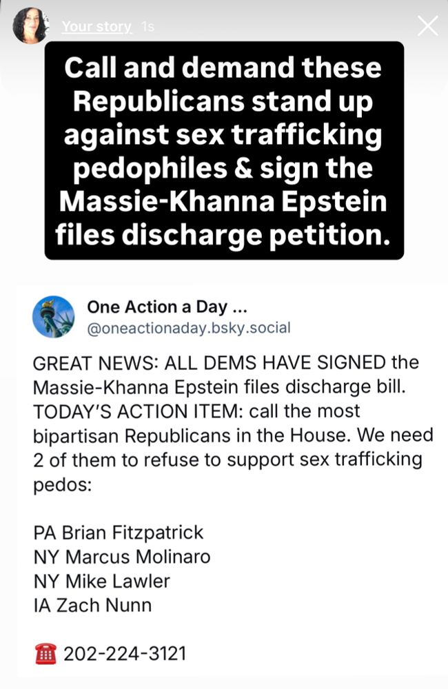 TODAY’S ACTION ITEM: We still need 2 more Republican’s votes. Please call R’s in your state and demand they vote to discharge the Epstein files now - even if they are not your rep. See list of more moderate R’s to call below.