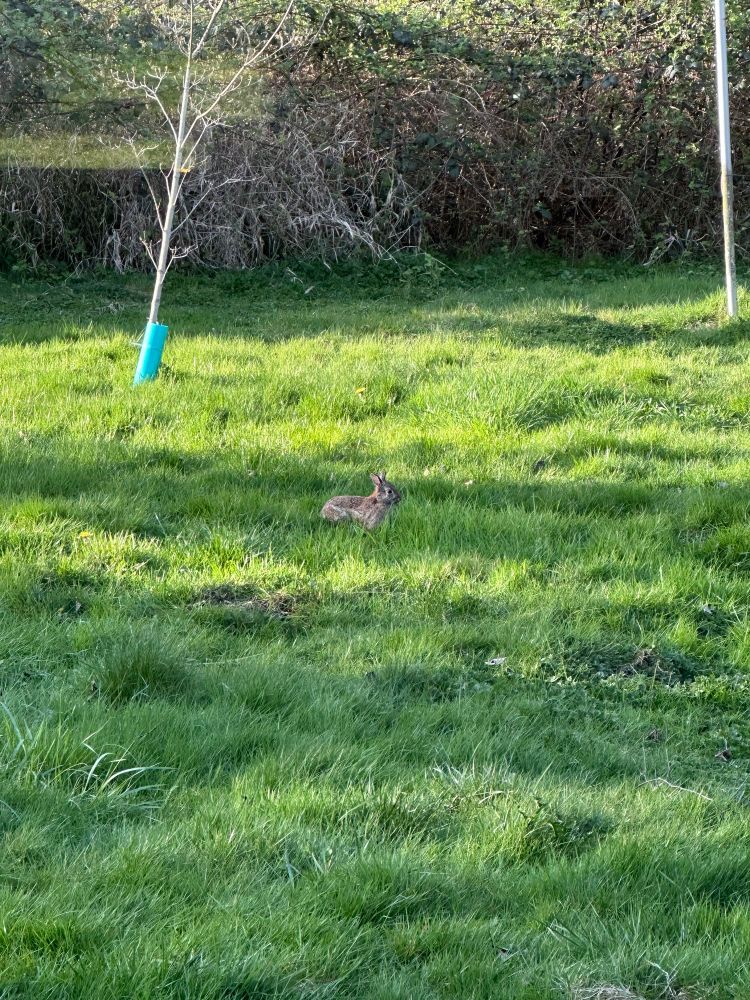 Two Grays watching the bunnies in the yard.