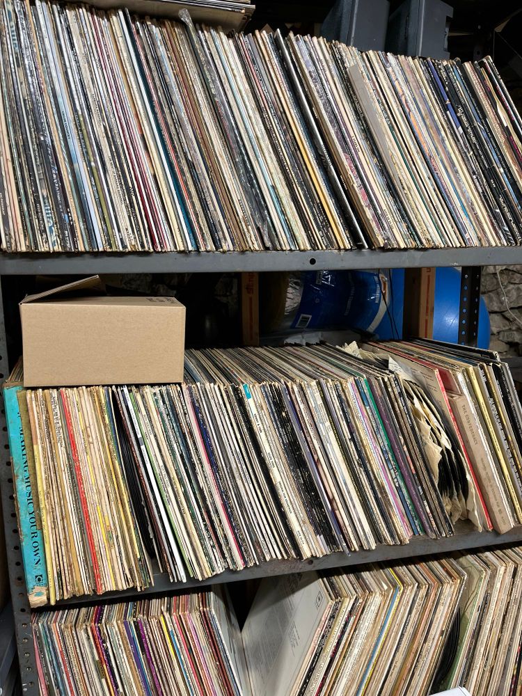 Record collection (partial). Opa says “The drag race one is actually really cool.”
