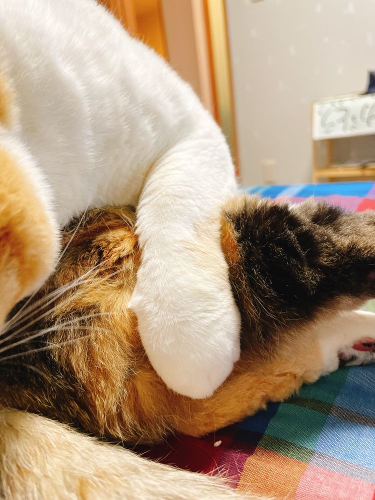 完全に枕取られてて人間がはじで寝てた