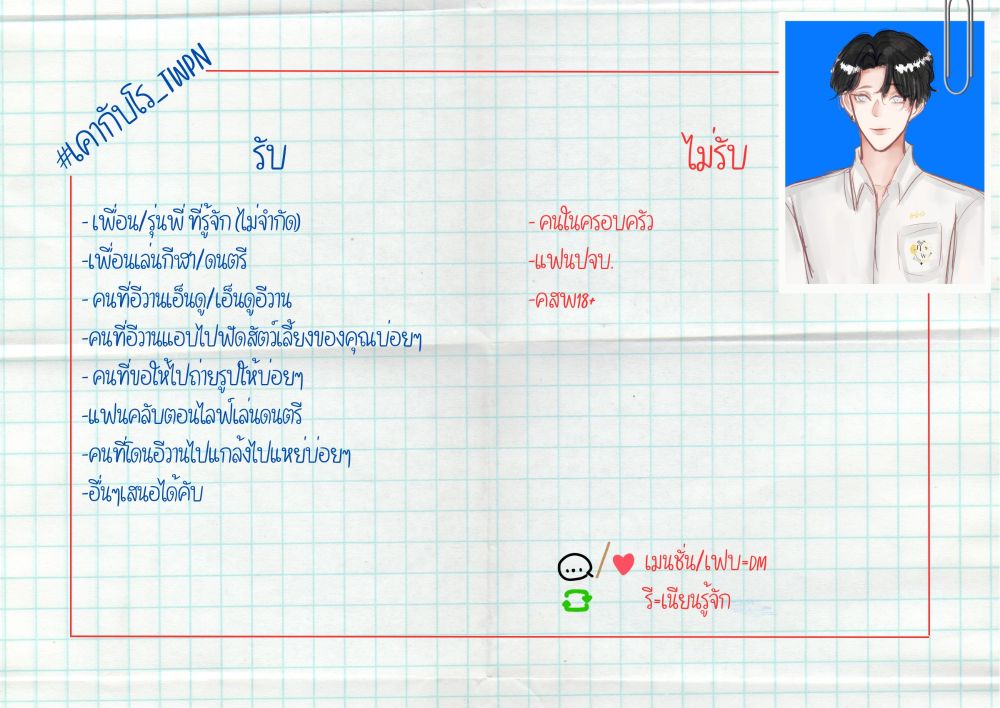 (ไม่ว่างทำใบโคเลยค่ะฮือ สามารถเฟบเพื่อเนียนรู้จักได้เลยนะคะ หรือถ้าอยากโคสามารถทักมาได้เลยนะคะ🫶💗💞)