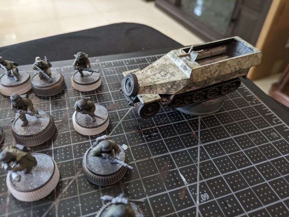 Currently on my workbench is 30 Germans and their accompanying half track. All still #wip but very happy with how the half track is coming out.