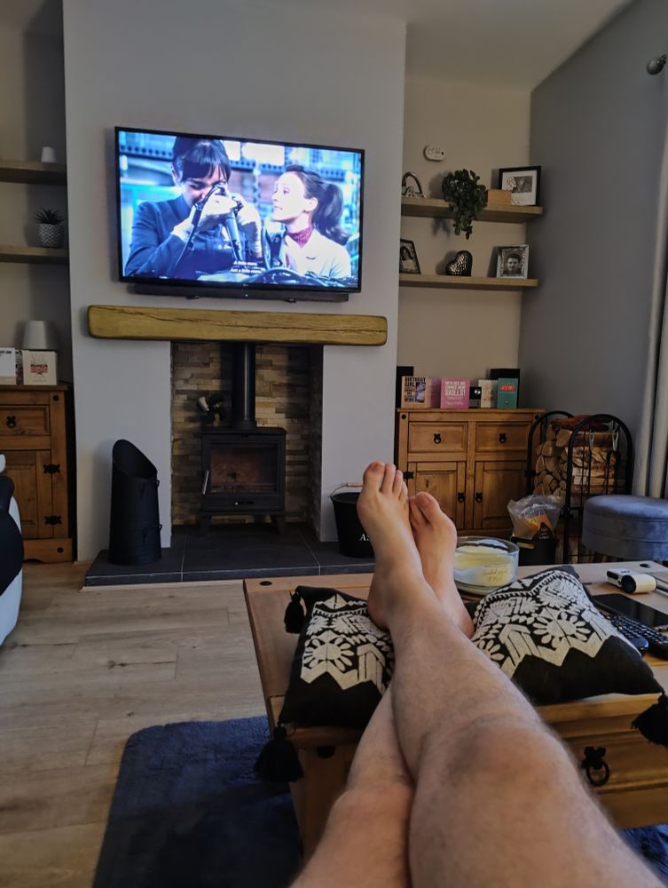 Log burner on. Cats all settled.