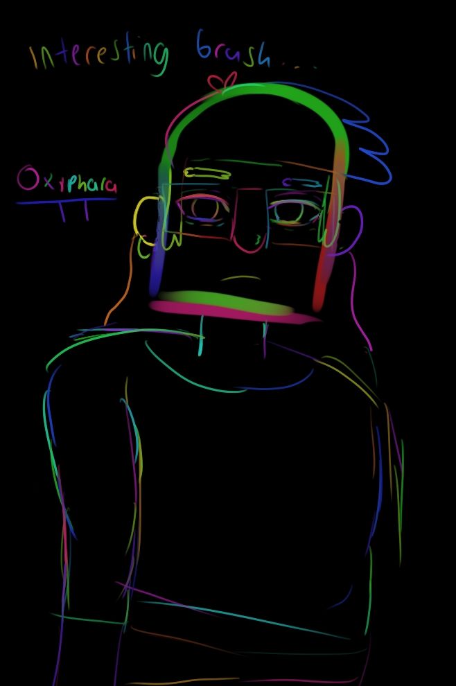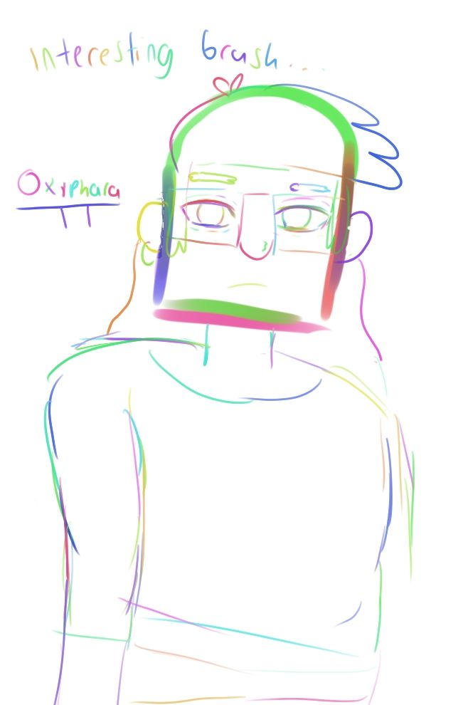 Playing around with CSP brushes, this one randomly changes the hue each time you put the pen back down after lifting it, neat! (assets.clip-studio.com/en-us/detail...) The last one reminds me of those Rainbow Scratch N' Color pages! Sea Grunks era #StanleyPines is my muse #GravityFalls