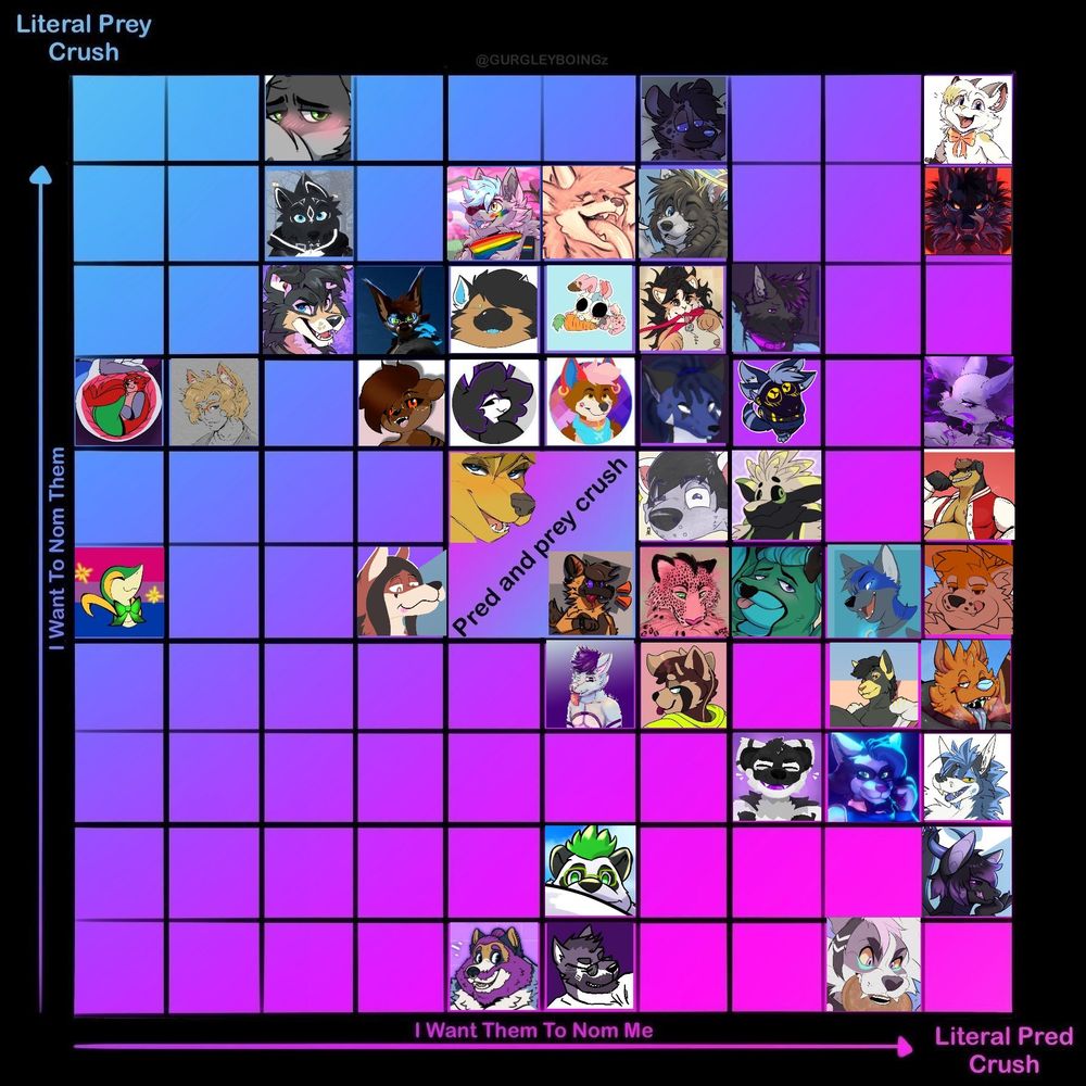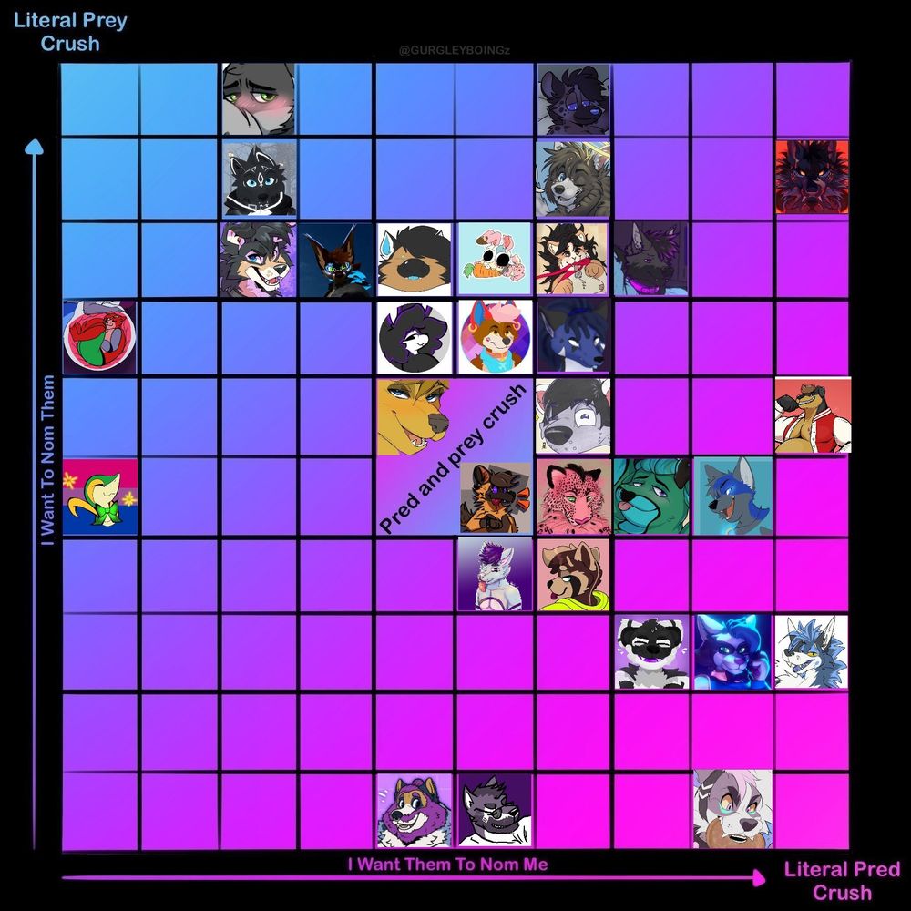 | 22 | Bisexual | He/Him | Autistic | Bri'ish | Wolfdog | Switch | Unfortunately into stummies (vore) |