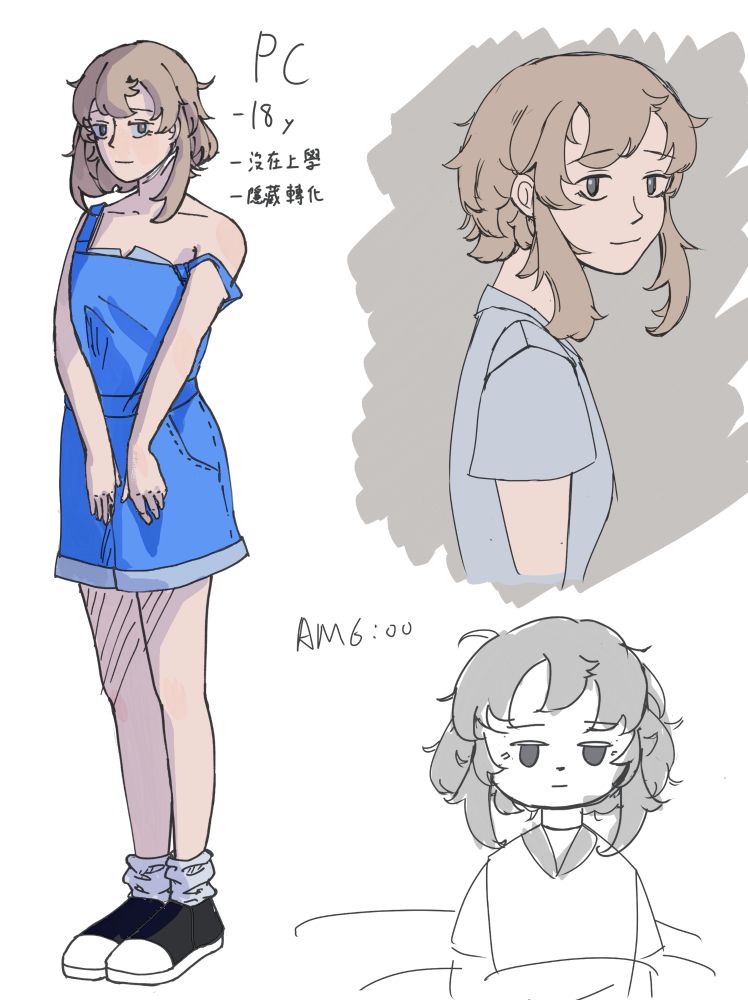 One of things I keep in mind when I draw her is that she never wear a skirt except basic look. This miserable girl is too sensitive and paranoid to wear a skirt