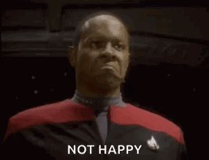 ALT: a man in a red and black uniform is making a funny face and saying `` not happy '' .