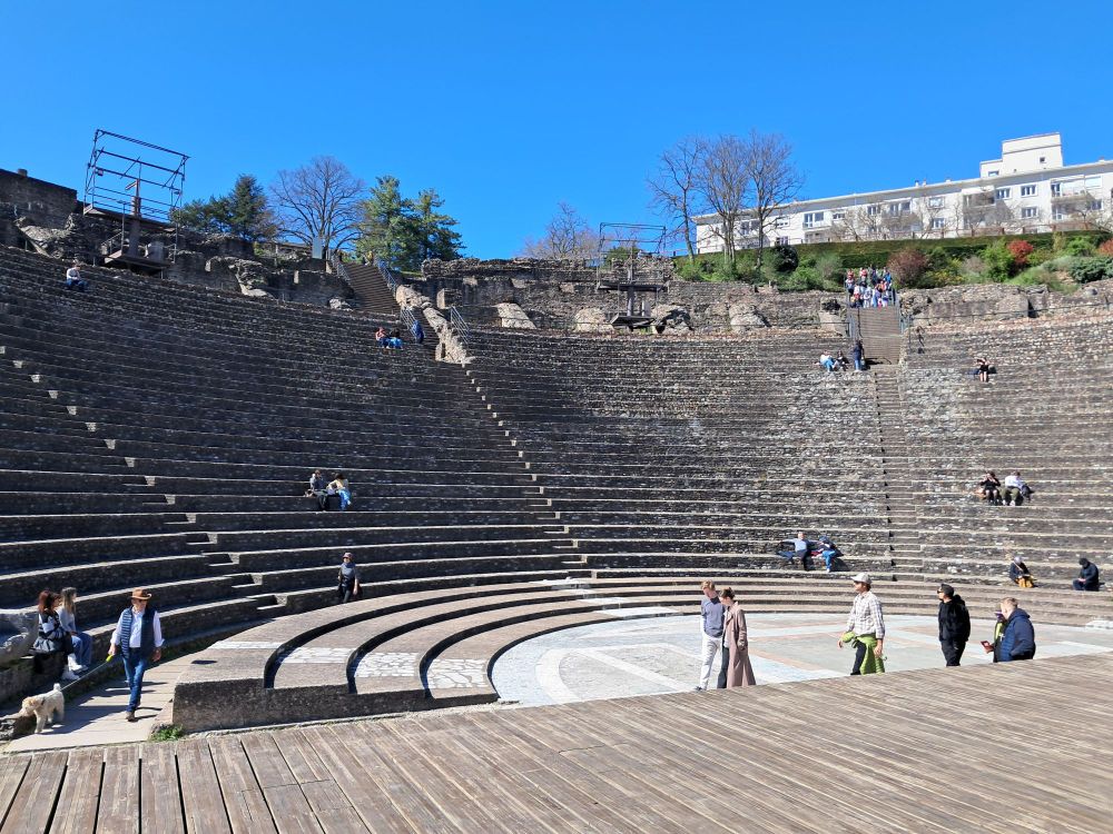 No shows yesterday, so I visited the Roman ampitheatre in Lyon, France. Spectators would have had great views of the entire river valley from their seats.
