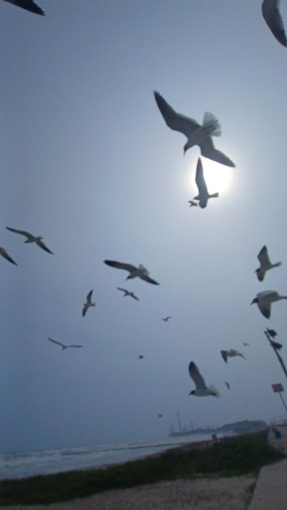 Seagulls came flying in to eat them.