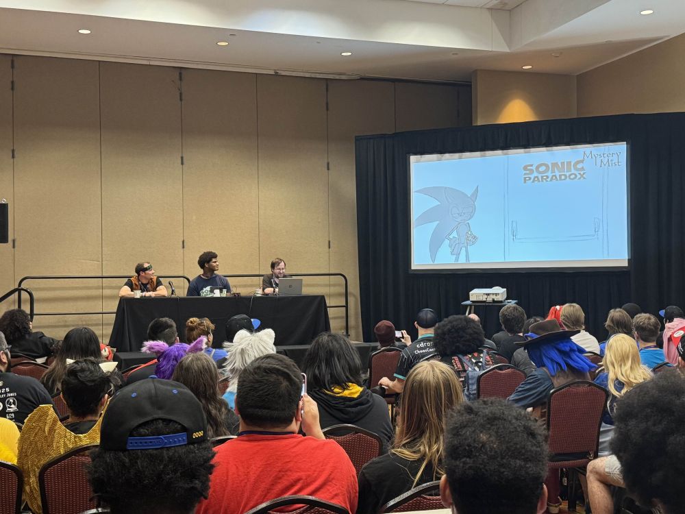The @sonicparadox.bsky.social 20th Anniversary panel! A huge thanks to @celestorion.bsky.social and @ticlastudios.bsky.social for having me up with them!