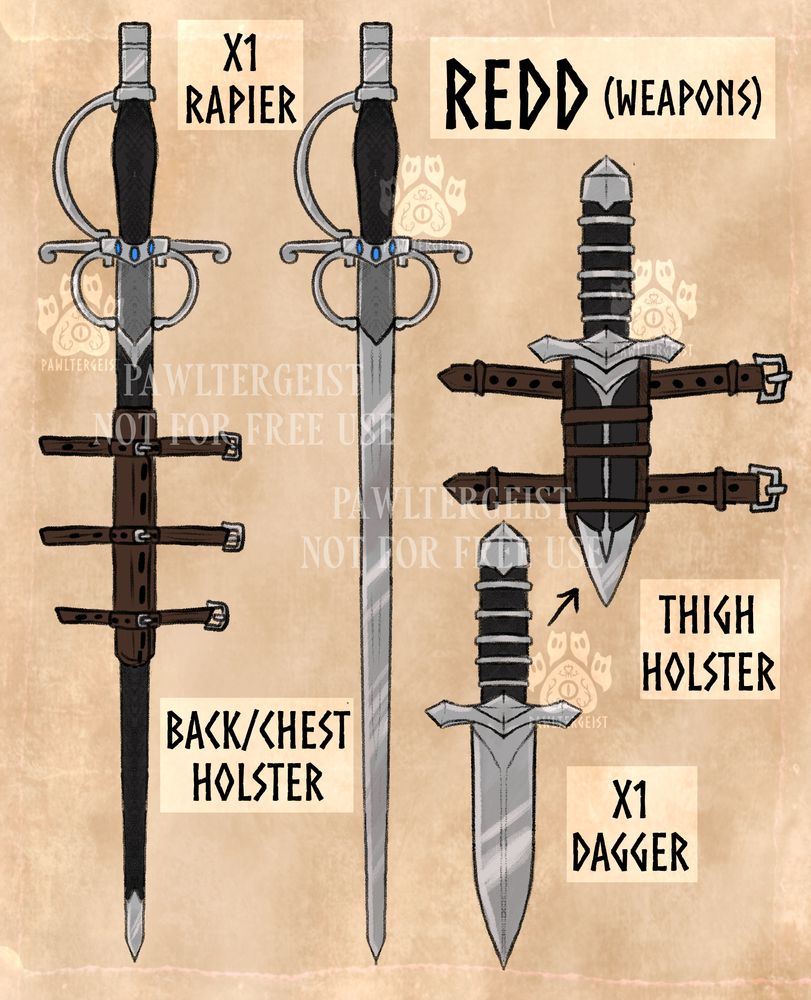 His main weapon - a rapier, was one his brother stole from the gang they both worked for - the boss found out and killed him with it and then Redd used it to kill said boss and is now on the run