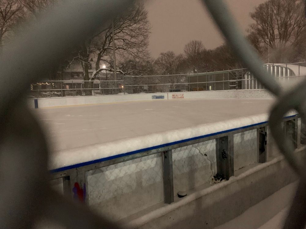 The hockey rink at the park on a beautiful walk home in the snow last night.