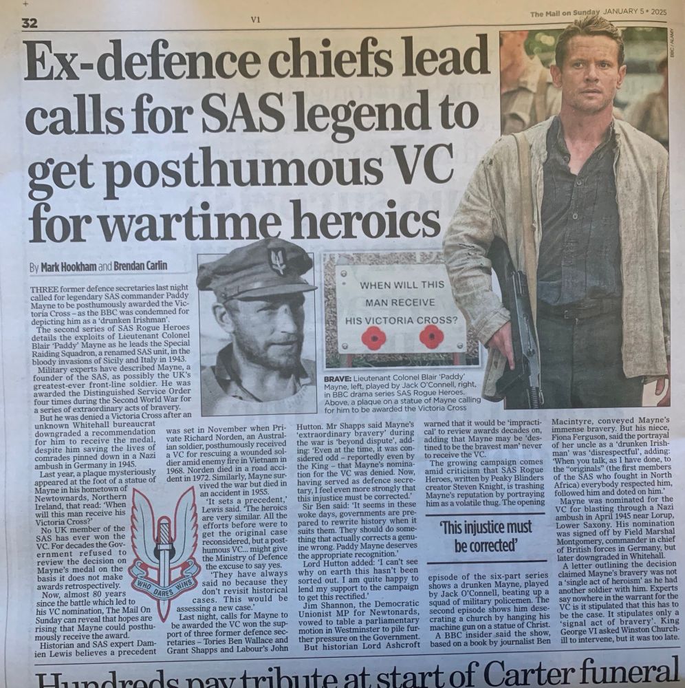 Today's Mail on Sunday - "Ex-defence chiefs lead calls for SAS legend to get posthumous VC for wartime heroics." Please share to spread the word - let's get this over the line and a great wrong rightly corrected. Thanks. 🙏 Damien Lewis & Gavin Mortimer use hashtag