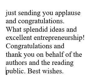 How lovely! I sent out my first ReBound Press newsletter and I assumed the email responses I'd get would be from people wanting their name removed from the mailing list. I did get a couple of those, but I also got this. So nice!