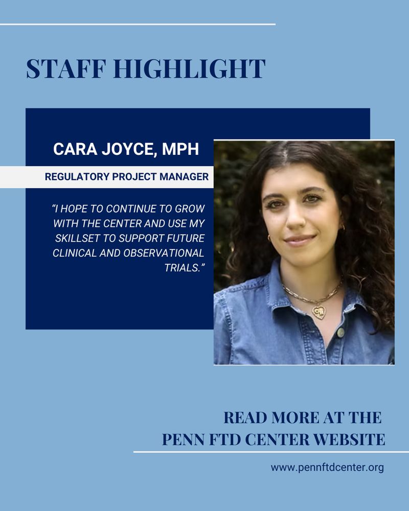 Cara Joyce, MPH is a Regulatory Project Manager at the Penn FTD Center for over 2 years.