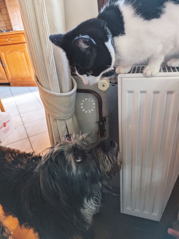 今日は写真が撮れなかったので、昨日の仲良し獣2匹の姿を🐾 少しは微笑んでよ…って感じですが。仏頂面だなぁ。