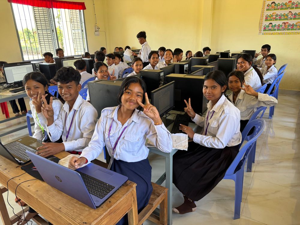 Our new Cambodia middle school building and computer lab is rocking. Our English/computer teacher Vichra has the kids doing great things.