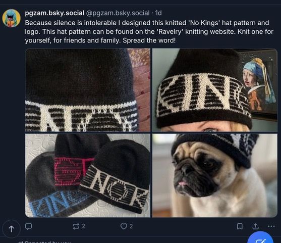 Mother, spouse, teacher, artist, athlete, knitting activist spreading the No Kings word one hat at a time.