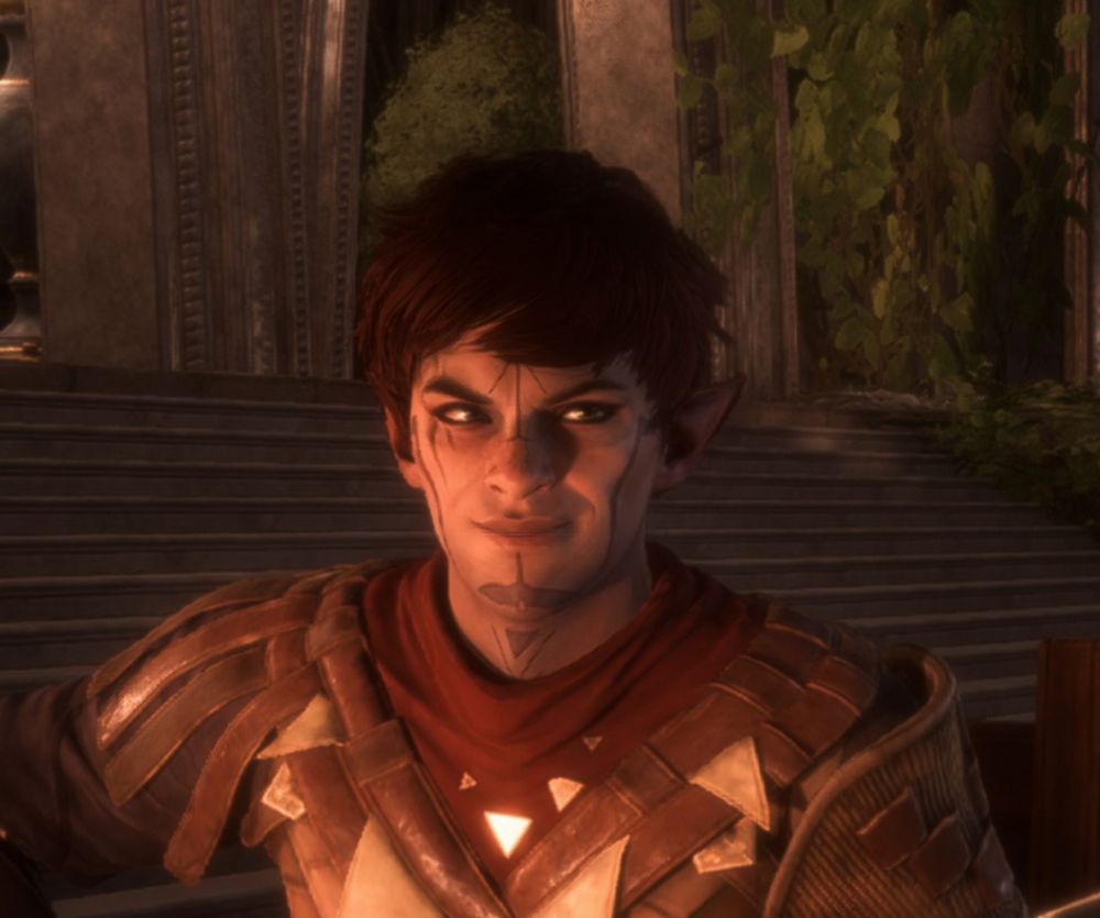 Shi'vetanis 'Ves' Lavellan: Inquisitor, whitty & charming rogue, dual daggers tempest, riding the Bull.