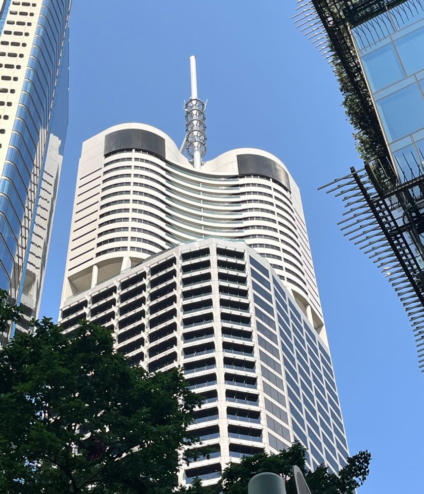 The pair of incomparable Harry Seidler-designed towers on thé Brisbane River frontage - older, shorter Riverside Centre & taller Riparian Plaza almost next door.