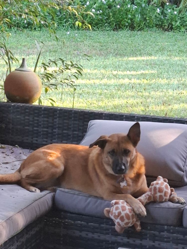 Little dog, doing a fine impression of a shot kangaroo
