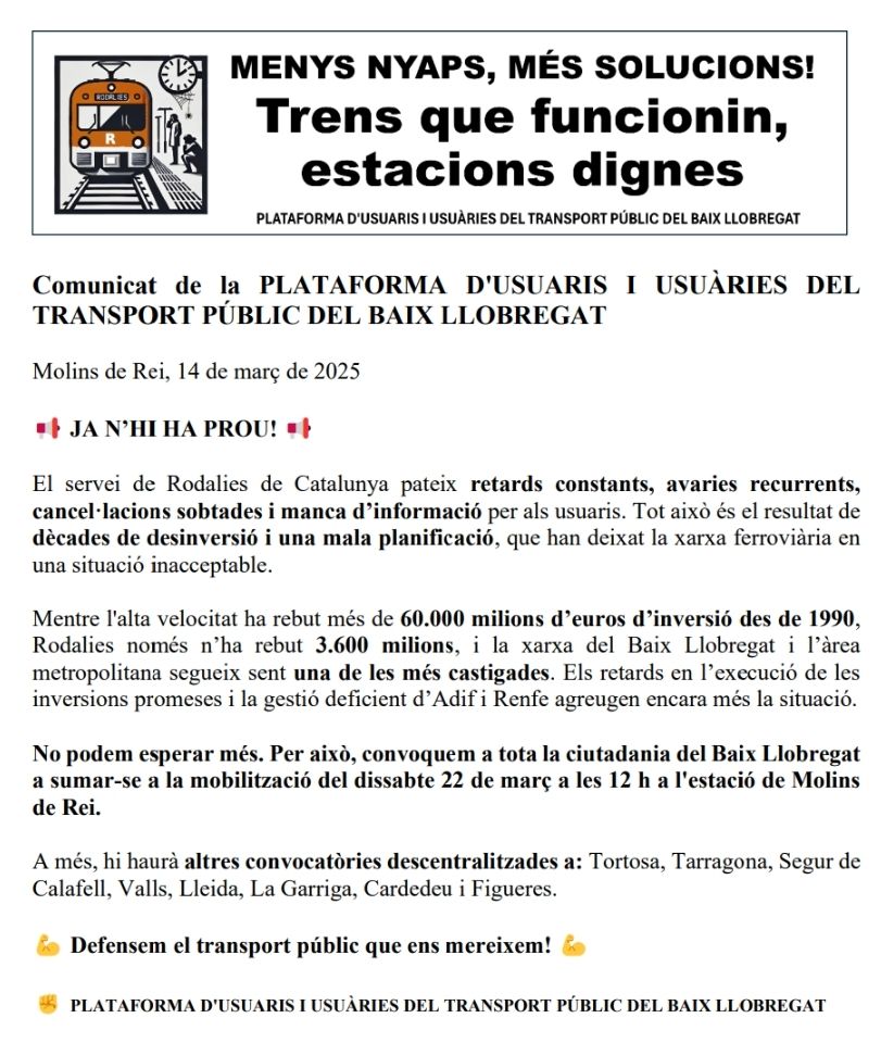Tot el suport de @ccoobllapag.bsky.social aquestes justes reivindicacions!!!