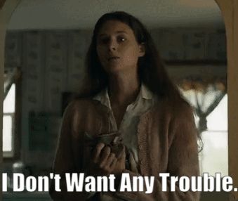 ALT: a woman in a brown sweater is holding a book and says i don 't want any trouble .