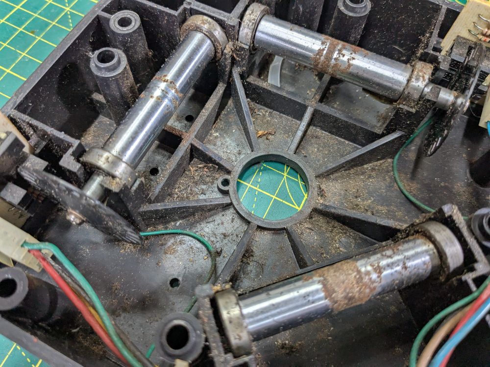 Broken leaf switch, solidified grease and aged drive belts all need attention before MJ can sing again...