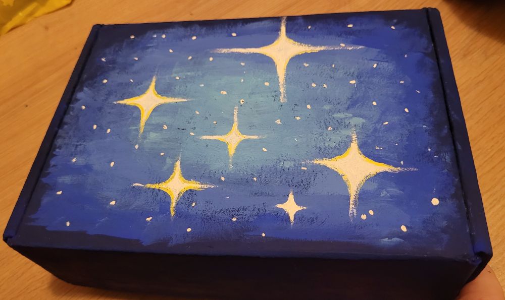 Didn't do much, just painted the rest of the box with the darkest shade of blue I have, but only the cover is important so I'm happy with the result.