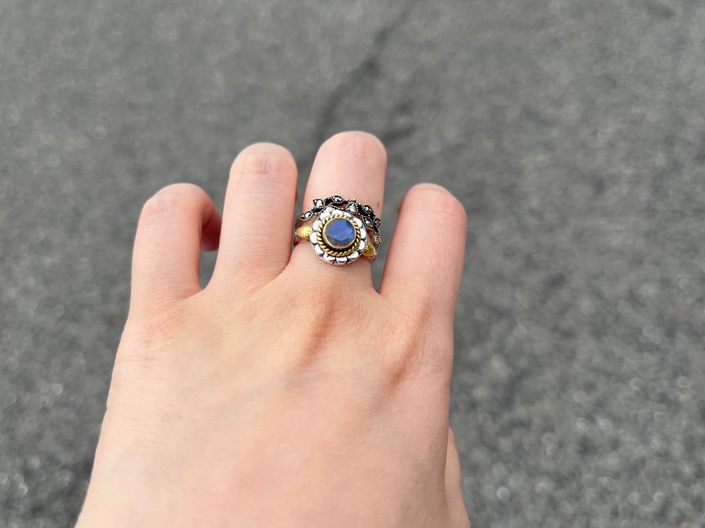 ヴァンクリみたいなデザインのラピスラズリ、本物かどうかはさておき、結構なお値段でしたが少し値切り……しかし最後会計で消費税乗ってきてそりゃそうやわってなりました笑 似合うのでヨシ