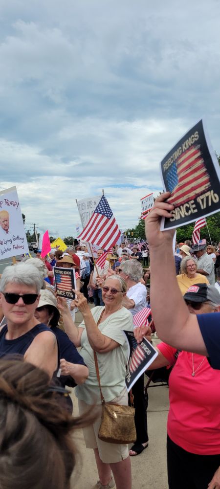 #NoKings Charlottesville was amazing. Crowd lining both sides of Seminole Trail as far as the eye can see.