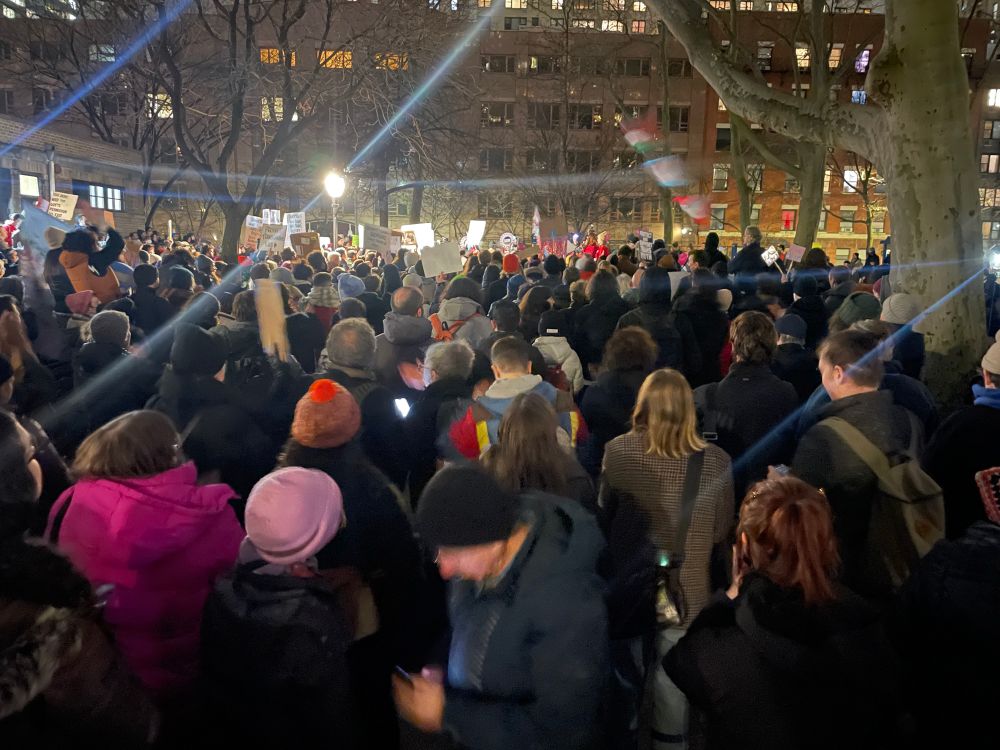 At a protest called to decry NYU Langone’s cancellation of medical appointments for young trans patients, now filling St. Vartan Park in Manhattan.