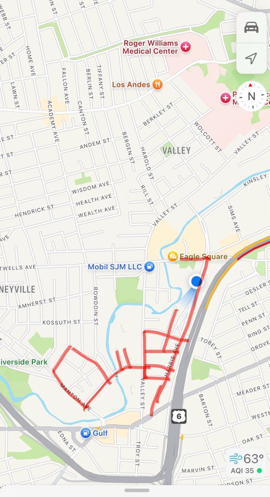 No walk signals at this intersection of Pocasset Ave. Bit of a gamble trying to cross and guessing when the cars are coming.
