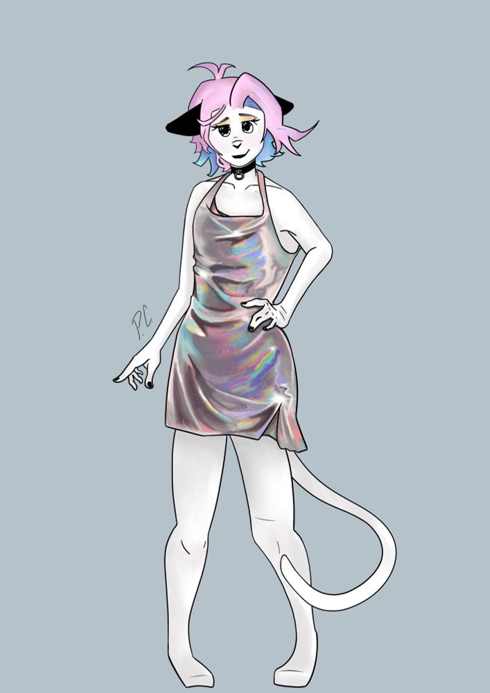 I wanted to draw a holographic dress but I thought he’d be a perfect candidate for wearing it since he’s a fan of skirts and stuff