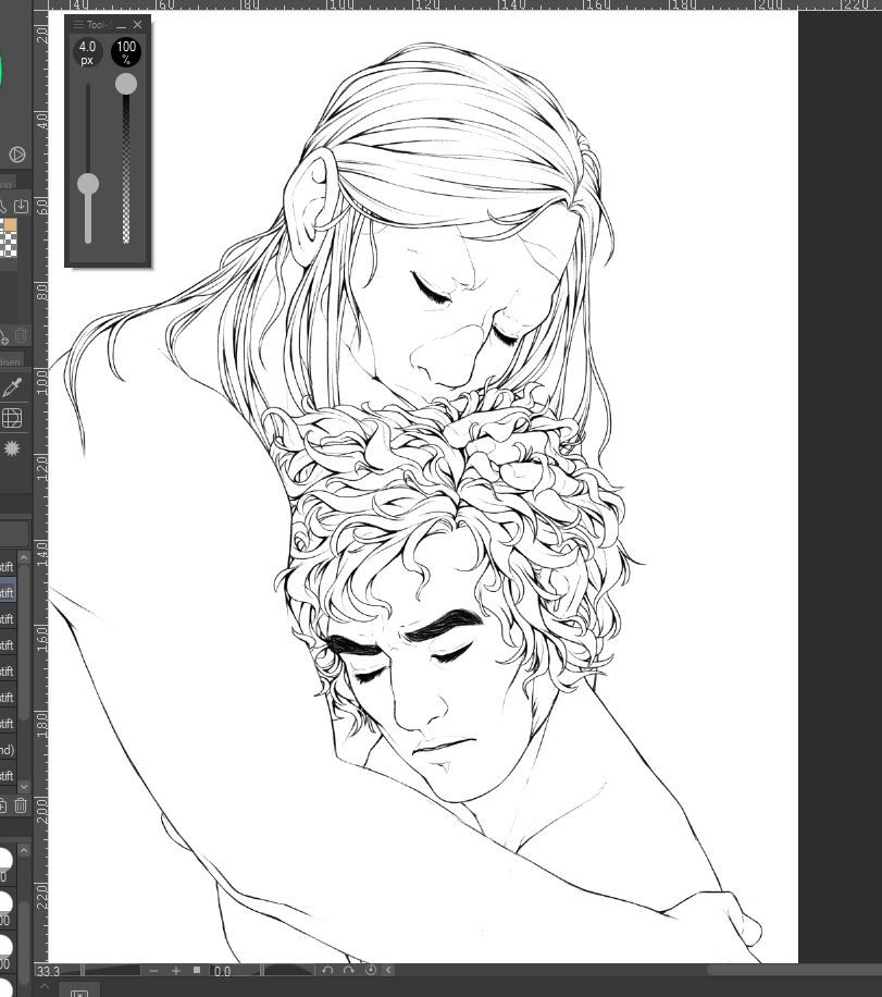 Me: -redrew the hair of character 1 from scratch bc I didn't like it, 3hrs have passed, I am now at the same stage as I was before just with slightly different hair on character 1-