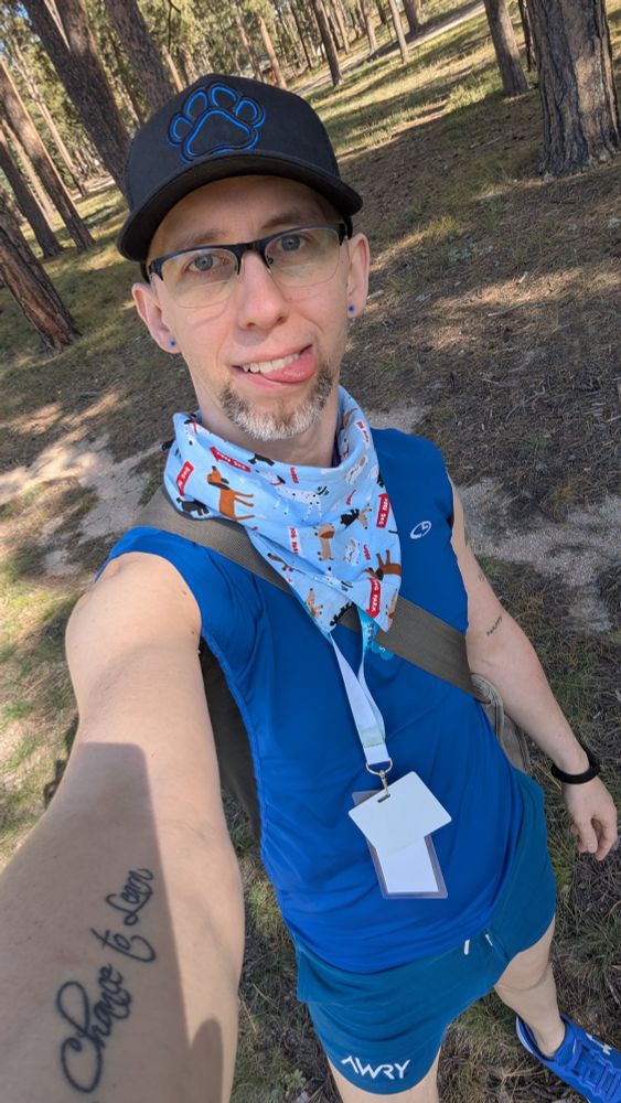 This past weekend, I got to go to my favorite kink event of the whole year, @pitmco.bsky.social, and had an absolute blast. I got to see old friends, make new ones, and have tons of puppy fun! I am on staff as the Yoga Instructor & I am also Daddy @doncollings.bsky.social's Service Pup. (continued)