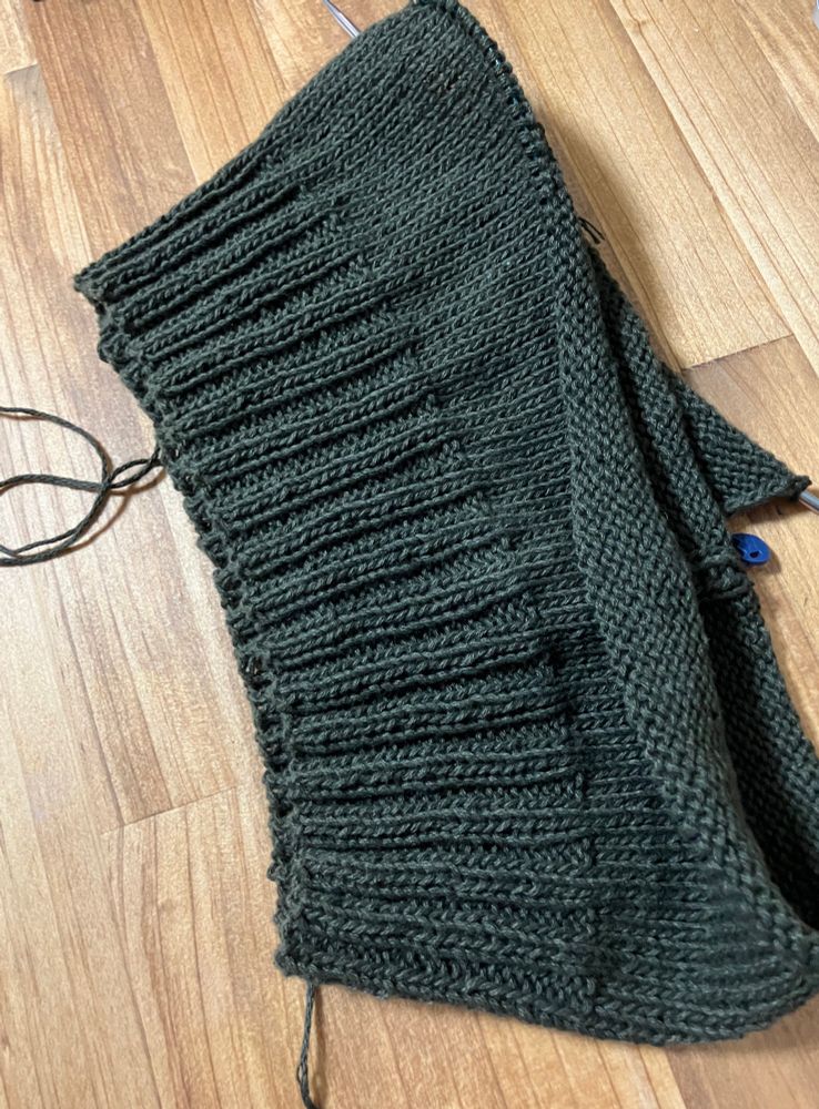 2段前の模様編みを間違えていたのを発見してしまいすんごい失速してしまった。この土日に巻き返すぞ…!