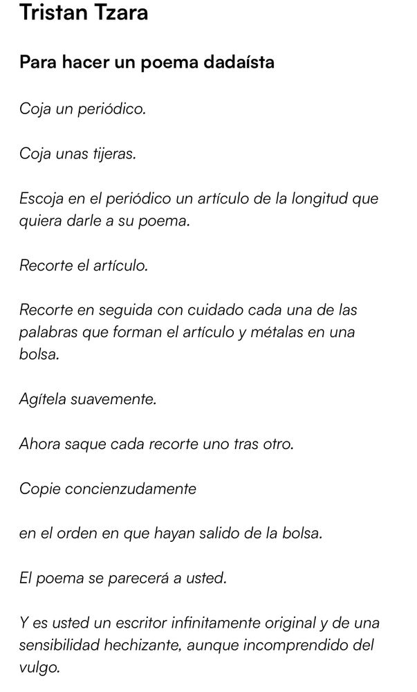 Esto nace en Suiza, en un Cabaret. Así explica uno como escribir poemas: