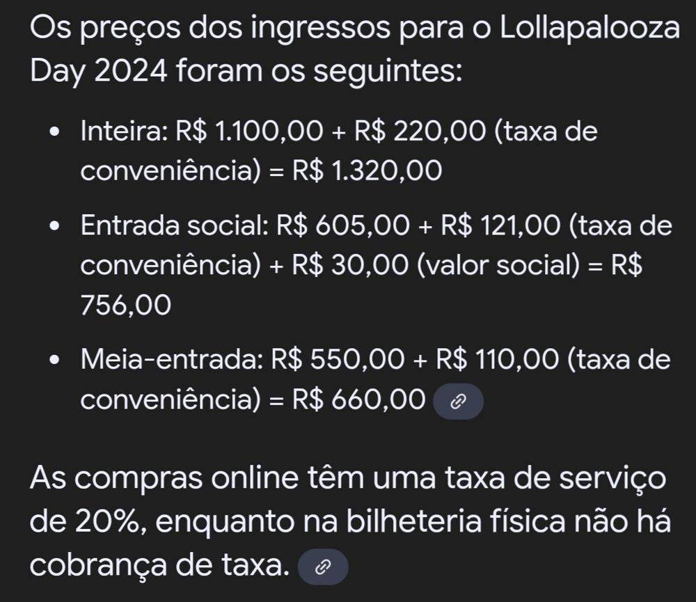 amg tô me baseando nos preços do ano passado, essa taxa de conveniência que fudeu, mas se tiver Bradesco tem 15% de desconto e pode dividir de 5x