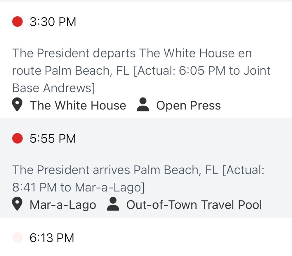 Attached are screenshots showing Trump's weekend schedule.