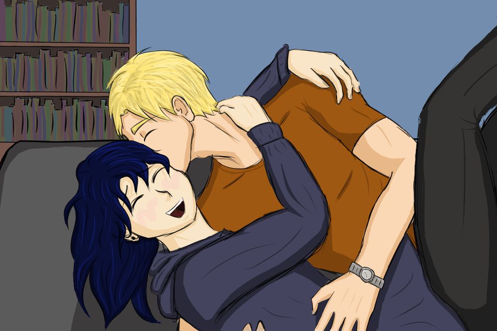 A surprise #stolitz commission for @hellamews.bsky.social inspired by their 3 emoji prompt: