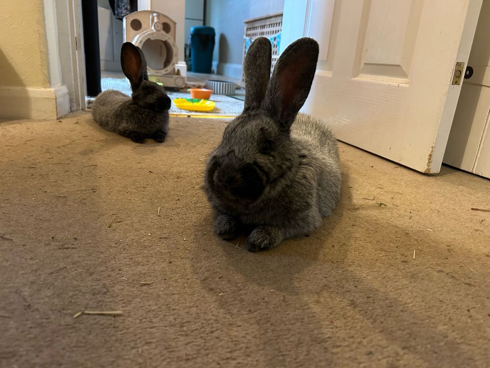 One of our rabbits, who is in the middle of shedding enough fur to make an entire extra rabbit, has ended up with full y11 girl spec eyebrows. She seems confused that we giggle every-time she looks directly at us.