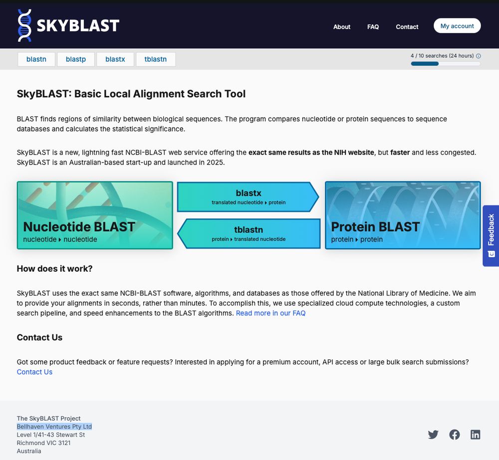SkyBLAST is indeed a "lightning fast" version of NCBI BLAST sky-blast.com. Like, really fast.