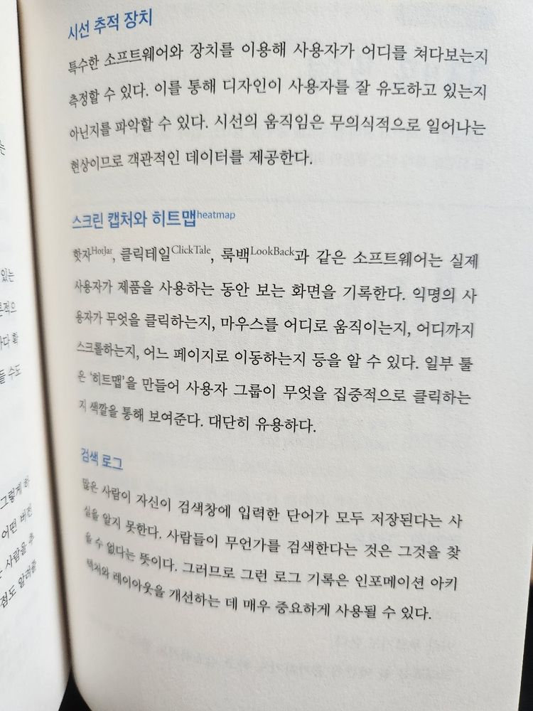 또한, 사용자가 검색하는 기록 로그를 살펴보면서 인포메이션 아키텍쳐와 레이아웃을 어떻게 개선할지 생각해볼 수 있음.