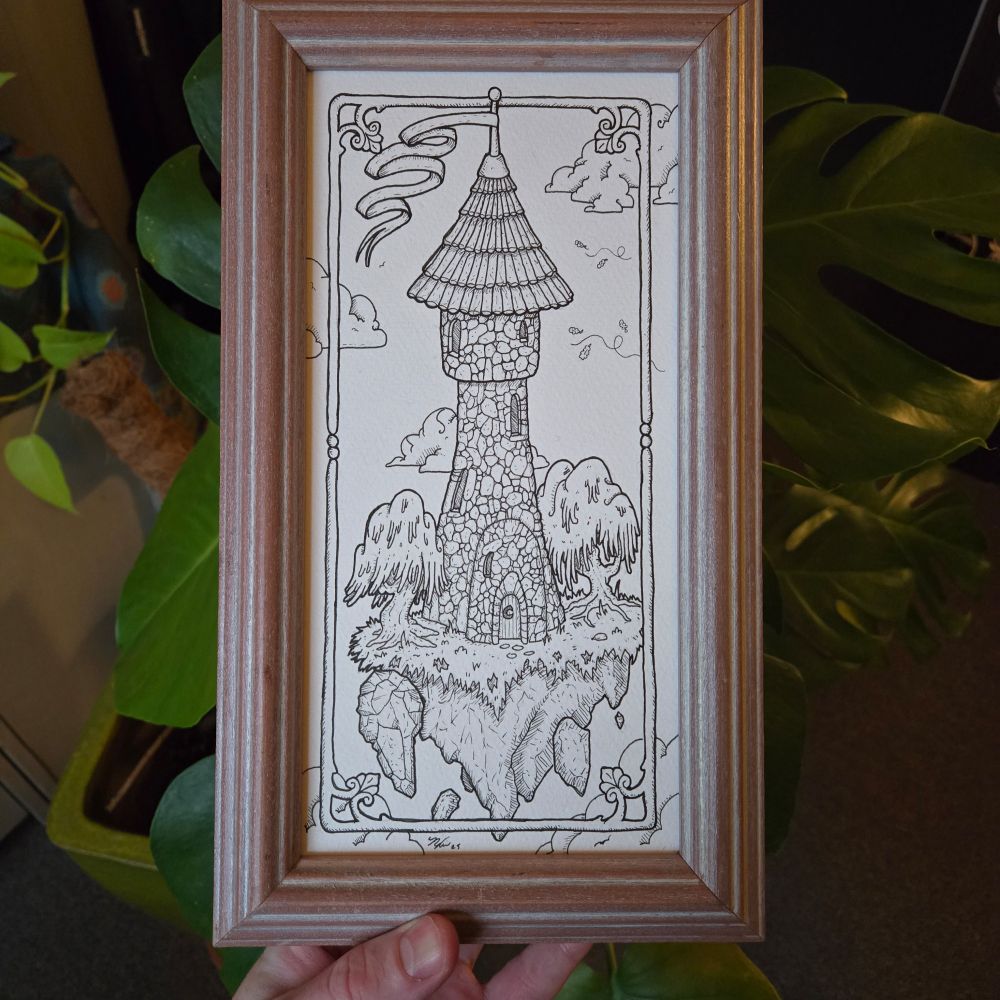 My style is detailed fine line, and I have a weird obsession with finding vintage/antique frames and letting them inspire the art piece.