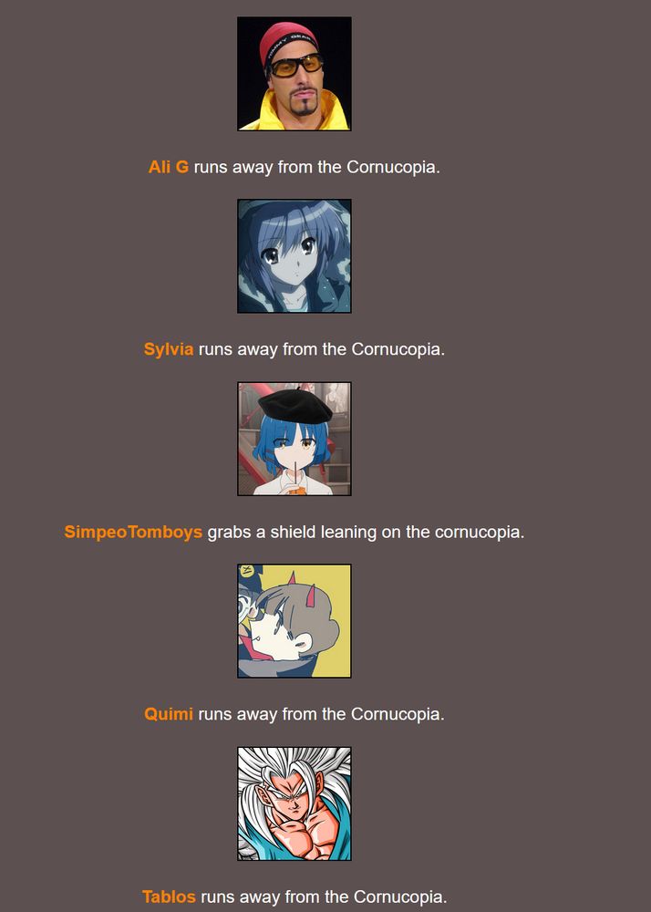 Este viernes a las 22:00 he decidido hacer un simulador de juegos del hambre, de esos que se hacían en Twitter.