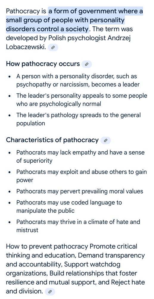In case you’re wondering what a pathocracy is, take a look below. Or read the alt text. I don’t care. But for the love of what’s left of humanity, learn it and let’s start acting accordingly…