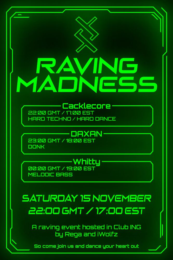We got raving madness this Saturday from 22:00 GMT Come along and party! 🕺❤️
