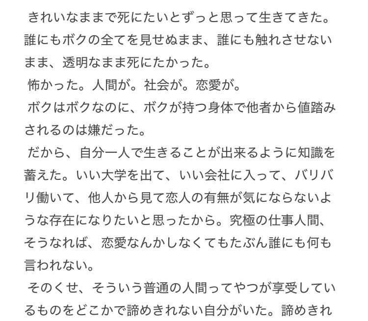 えるちはたまに小説を書くが、冒頭を書いただけで自分の文章にウットリしてしまい、